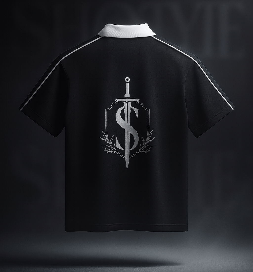 Crownline Polo T-Shirt Collection Crownline Polo T-Shirt CollectionTheCrownline Polo T-Shirt Collectionstands as a symbol of prestige, blending aristocratic elegance with modern refinement. Crafted from premium, smooth-touch fabric, each piece bears the commanding emblem of a sword and laurel, encased in a noble crest and crowned by the stately “S”—a mark of strength, honor, and legacy. The Midnight Black Edition emanates authority and sophistication, ideal for those who lead with quiet dominance, while the Royal Navy Edition channels heritage and timeless grace. Both are adorned with a pristine white collar and shoulder piping, uniting classic tailoring with contemporary streetwear influence. The Crownline Polo is not just apparel—it is a statement of power, legacy, and style.